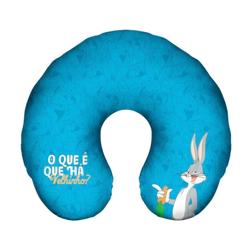 Almofada de viagem personalizada “O Que É Que Há Velhinho” do Pernalonga, para você curtir a sua viagem com o máximo de conforto ou tirar aquela soneca durante um longo trajeto. Feita em tecido 100% poliéster com enchimento de fibra siliconada.